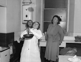 | Keywords: cymru wales llyfrgell genedlaethol cymru llyfrgellgenedlaetholcymru national library of wales nationallibraryofwales charles, geoff (1909-2002) charlesgeoff19092002 negydd ffilm negyddffilm film negatives filmnegatives pancakes social life sociallife customs oswestry people blackandwhite monochrome indoor black and white Teitl Cymraeg/Welsh title: Noson crempogau Gild Wesleaidd Croesoswallt Ffotograffydd/Photographer: Geoff Charles (1909-2002) Nodyn/Note: Members of the Oswestry Wesley Guild tossing pancakes. Dyddiad/Date: 23/2/1955 Cyfrwng/Medium:  Negydd ffilm / Film negative Cyfeiriad/Reference: (gch07791) Rhif cofnod / Record no.:  3368452  Rhagor o wybodaeth am gasgliad Geoff Charles yn Llyfrgell Genedlaethol Cymru  More information about the Geoff Charles Collection at the National Library of Wales   Mae ffotograffau Geoff Charles hefyd yn rhan o Broject Europeana Libraries  Geoff Charles' photographs also form part of the Europeana Libraries Project Teitl Cymraeg/Welsh title: Noson crempogau Gild Wesleaidd Croesoswallt Ffotograffydd/Photographer: Geoff Charles (1909-2002) Nodyn/Note: Members of the Oswestry Wesley Guild tossing pancakes. Dyddiad/Date: 23/2/1955 Cyfrwng/Medium:  Negydd ffilm / Film negative Cyfeiriad/Reference: (gch07791) Rhif cofnod / Record no.:  3368452  Rhagor o wybodaeth am gasgliad Geoff Charles yn Llyfrgell Genedlaethol Cymru  More information about the Geoff Charles Collection at the National Library of Wales   Mae ffotograffau Geoff Charles hefyd yn rhan o Broject Europeana Libraries  Geoff Charles' photographs also form part of the Europeana Libraries Project  <b>Teitl Cymraeg/Welsh title:</b> Noson crempogau Gild Wesleaidd Croesoswallt