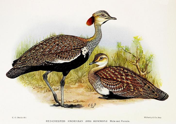 | Keywords: OtisRuficristaDavies.jpg Lophotis ruficrista http //archive org/stream/cu31924001576226 page/n52/mode/1up Horsbrugh Boyd 1912 The game-birds and water-fowl of South Africa/ Witherby Co London 1912 Creator Claude Gibney Finch-Davies PD-old-auto-1923 1920 Lophotis ruficrista Claude Gibney Finch-Davies The game-birds and water-fowl of South Africa 1912 |