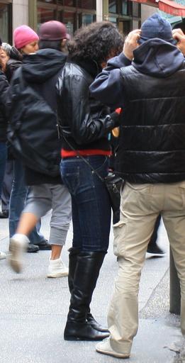 Keywords: Otk boots 10 09a.jpg en Woman wearing low-heeled black leather over-the-knee boots with jeans and black leather jacket October 2009 own Biffthree 2010-07-19 Boots Women wearing jeans Leather jackets Fashion