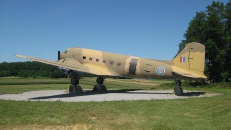 Keywords: Otok-Dakota(DC3).JPG en Dakota DC3 at Otok village near Kolpa river Slovenia own Sl-Ziga 2009 Douglas DC-3 Otok