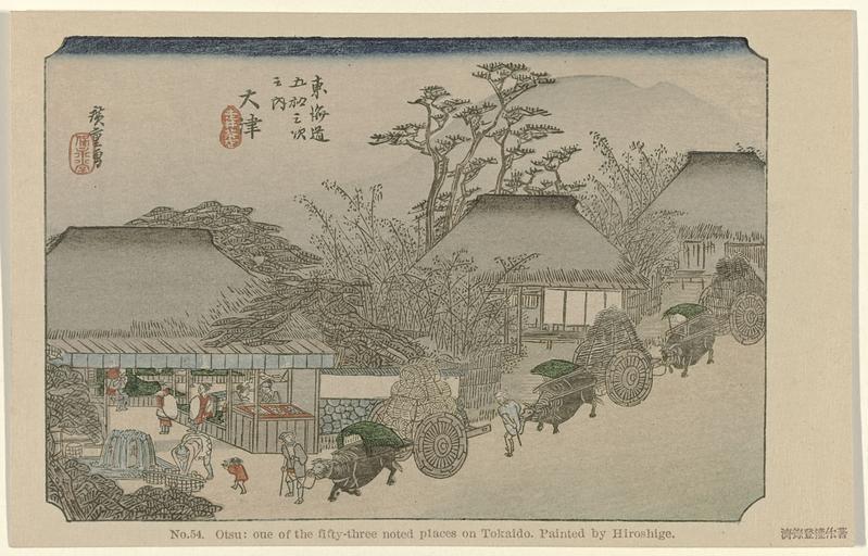 | Keywords: Otsu-Rijksmuseum RP-P-2010-310-95-54.jpeg accession number RP-P-2010-310-95-54 Utagawa died 1858; Fujisawa Bunjirô Fujisawa BunjirôHiroshige I credit line nl Drie wagens met ossen passeren een dorpje langs de Tôkaidô Label Line mentioned on object Hiroshige I Utagawa 1797 - 1858 1906 kleurenhoutsnede; lijnblok in zwart met kleurblokken Collection prenten; Japan collectie kaart Height mm 90 kaart Width mm 141 exhibition history cardboard object history Acquisition 2009-10-13 object type PD-US PD-old Data and photography rights All data and all images made available through the API are either in the public domain or are subject to a CC0 license https //www rijksmuseum nl/en/api/terms-and-conditions-of-use cc-zero place of creation Japan http //www rijksmuseum nl/collectie/RP-P-2010-310-95-54 http //hdl handle net/10934/RM0001 COLLECT 490321 handle Otsu Uploaded with GWToolset Rijksmuseum RP-P-2010-310-95-54 http //www rijksmuseum nl/media/assets/RP-P-2010-310-95-54 Images uploaded by Fæ Japanese 20th-century prints in the Rijksmuseum Amsterdam Images from the Rijksmuseum |