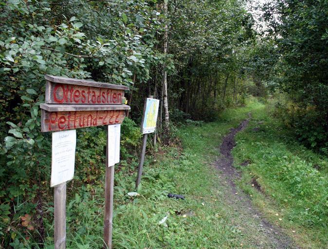 Keywords: Ottestadstien.jpg en Sign and Map at th Ottestad-path Norway no Bilde av kart og skilt ved Ottestadstien Stange kommune Hedmark fylke own Alvbovo Ottestad Hiking and footpath signs in Norway