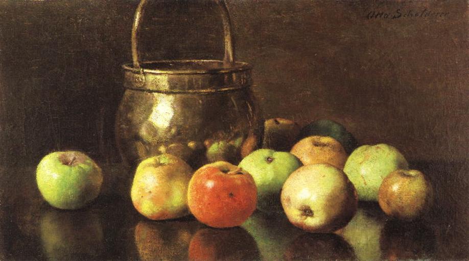 | Keywords: Otto Scholderer Stilleben mit Äpfeln und Messingeimer.jpg Oil canvas cm 33 58 object history credit line accession number user Rlbberlin Otto Scholderer Still life paintings of fruits vessels in art 19th-century still life paintings Paintings of apples PD-old-100 |