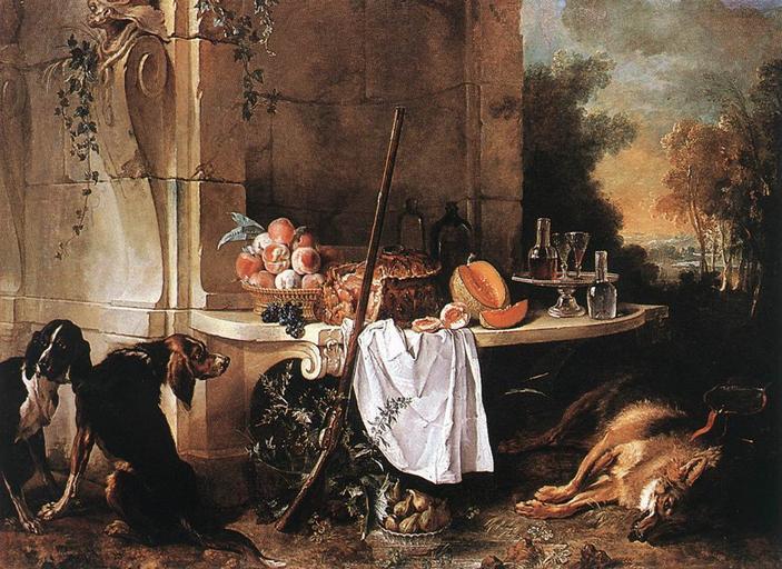 | Keywords: Oudry, Jean-Baptiste - Dead Wolf - 1721.jpg Artwork creator Jean-Baptiste Oudry 1721 Oil on canvas size cm 193 260 Institution Wallace Collection object history credit line http //www wga hu/html/o/oudry/deadwolf html accession number WGA link 16778 http //www wga hu/art/o/oudry/deadwolf jpg http //www wga hu/html/o/oudry/deadwolf html PD-old-100 painting still-life French 1701-1750 WGA form painting WGA type still-life WGA School French WGA time period 1701-1750 Still-life paintings by Jean-Baptiste Oudry Paintings of animals by Jean-Baptiste Oudry French paintings in the Wallace Collection 1721 oil on canvas paintings in the United Kingdom 1721 paintings from France 18th-century paintings of dogs Dead animals in art Hunting dogs in art Paintings of fruit baskets Paintings of wolf hunting Rifles in art Still life paintings with dogs Tables in art Uploads by Mattes from external sources |