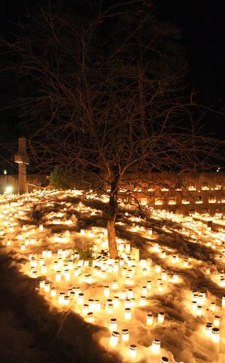 Keywords: oulu finland winter snow ice candles night evening memorial cemetery tree cross lights