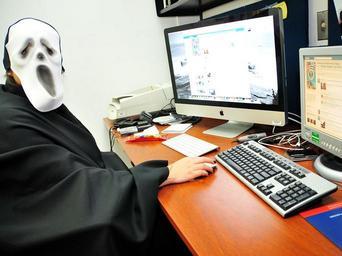 Keywords: halloween scary indoor electronics computer mouse room office Fiorella, Video Production Intern: "Halloween scares me!" Fiorella, Video Production Intern: "Halloween scares me!"