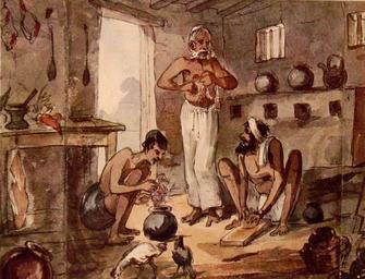 | Keywords: Ourcookroom.jpg en Our Station from 'Curry and Rice on Forty Plates or The Ingredients of Social Life at Our Station in India by Captn Geo F Atkinson'; the frontispiece ; a list of the contents A series of colored prints depicting British colonial life in a small North Indian station drawn by George Franklin Atkinson 1822-1859 and published in 1858 with later reprints The images below sometimes cut off small bits of the edges of the originals Our Agriculturalists Our Ball Our Band Our Bath Our Bazar Our Bedroom Our Burra Khanah Our Cloth Merchant Our Coffee Shop Our Colonel Our Colonel's Wife Our Cook Room Our Departure for Home Our Doctor Our Doctor's Wife Our Farm Yard Our Garden Our Invalid Major Our Joint Magistrate Our Judge Our Judge's Wife Our Magistrate Our Magistrate's Wife Our Mall Our Missionary Our Moonshee Our Nuwab Our Pack of Hounds Our Padre Our Pig Sticking Our Race Course Our Sporting Griff Our Stage Coaching Our Theatricals Our Tiger-Shooting Our Travellers' Bungalow Our Wedding Source ebay Oct 2004 1822-1859 and published in 1858 with later reprints http //www columbia edu/itc/mealac/pritchett/00routesdata/1800_1899/dailylife_drawings/ourstation/ourstation html George Franklin Atkinson 1822-1859 PD-Art Uploaded with UploadWizard George Francklin Atkinson 'Curry and Rice on Forty Plates or The Ingredients of Social Life at Our Station in India' London John B Day 1858 |