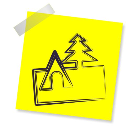 Keywords: outdoor camping adventure nature summer camp lifestyle landscape travel tent hiking icon yellow sticker note post note