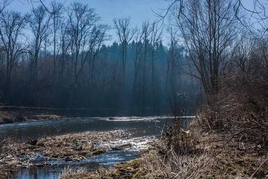 Keywords: outdoor trees river spring haze