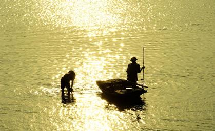 Keywords: outdoor water the boat catching fish sunset gold the afternoon vietnam
