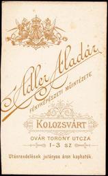 | Keywords: Ovár Torony utca 1-3., Adler Aladár fényképészeti műintézete. Fortepan 81003.jpg  Check categories 2016 August 28 hu Ovár Torony utca 1-3 Adler Aladár fényképészeti műintézete Location Romania Transylvania Cluj-Napoca Tags verso photographer studio Title Ovár Torony utca 1-3 Adler Aladár fényképészeti műintézete http //www fortepan hu/_photo/download/fortepan_81003 jpg 1900 Fortepan 81003 http //www fortepan hu/_photo/download/fortepan_81003 jpg http //www fortepan hu/ lang en img 81003 Unknown The release at fortepan hu is CC-BY-SA-3 0 As the photographer is unknown or pseudonymous and the photograph is Age 1900 01 01 years old it is considered public domain both in the country of publication Hungary and the USA where Wikimedia Commons is hosted See Fortepan HU for more information on related uploads PD-anon-70-EU PD-1923 PD-1923 DEFAULTSORT Fortepan 081003 1900 photographs Images uploaded by Fæ |