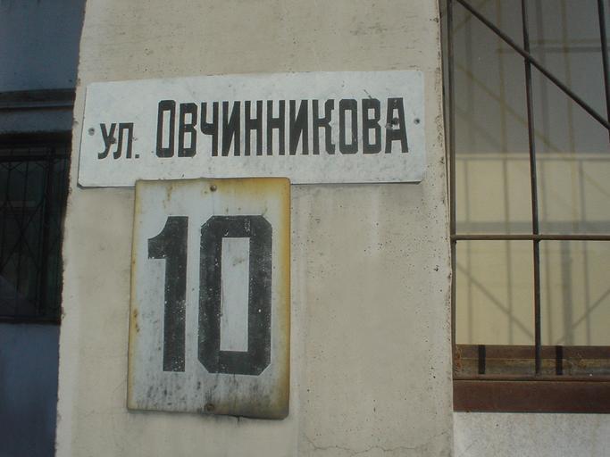 | Keywords: Ovchinnikova-st-table.JPG en Address plaque on the house Ovchinnikova street Chelyabinsk Russia ru Ад есная табличка на доме ул Овчинникова Челябинск own Andreasstolz 2010-04-08 Plaques in Chelyabinsk House numbers in Russia 10 house number Streets in Chelyabinsk |