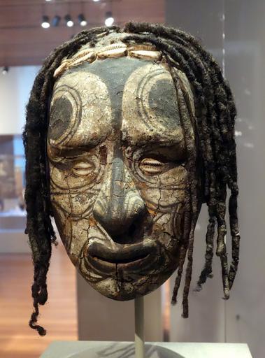| Keywords: Overmodeled ancestor skull, Middle Sepik, Iatmul people, 19th to early 20th century, human hair and skull, shell, wax, clay - De Young Museum - DSC01025.JPG en Exhibit in the De Young Museum San Francisco California USA This artwork is in the public domain because the artist died more than 70 years ago Photography was permitted in the museum without restriction 2013-11-05 16 36 32 own Daderot other versions cc-zero Oceanic art in the De Young Museum Uploaded with UploadWizard Iatmul people Ancestor skulls of Papua New Guinea |