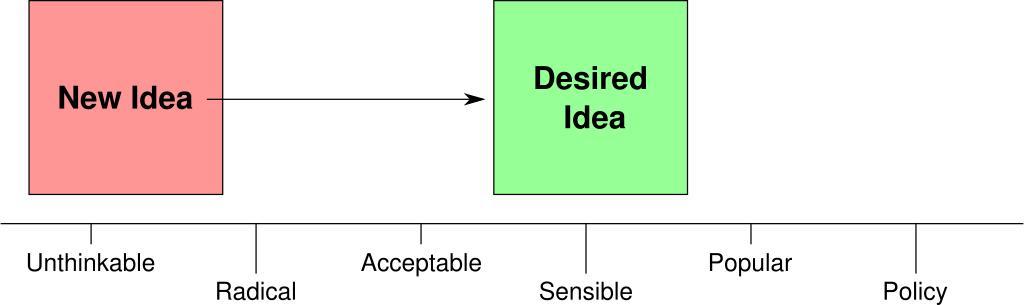 | Keywords: Overton Window.svg In the political theory of the Overton Window a new idea fills the window of what the public views as unthinkable causing the desired idea to shift into the window of what the public views as sensible without the need to explain any benefit of the desired idea own Scott5114 based upon File OvertonWindow jpg by Zoysite 2011-12-24 Public domain credit appreciated but not required Version based on a diagram from the Mackinac Center for Public Policy site <br />80px Political science Social psychology |