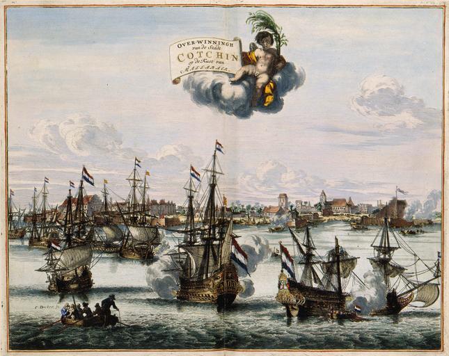 | Keywords: Overwinningh van de Stadt Cotchin op de Kust van Mallabaer - Victory over Kochi on the coast of Malabar.jpg en The capture of Kochi and victory of the Dutch V O C over the Portuguese in 1656 on the coast of Mallabar Atlas van der Hagen Creator Coenraet Decker 1682 PD-old-100 Dutch Golden Age Military history of Portugal Military history of the Netherlands Dutch East India Company 17th-century marine paintings Portuguese rule in India Conflicts in 1656 Atlas van der Hagen 1682 in Kochi Kerala 17th-century sailing ships in paintings Fort Emmanuel Kochi Kerala Dutch-Portuguese War Landscape paintings of India Sailing ships of Portugal Sailing ships of the Netherlands 1656 in Kochi Kerala Template artwork possible |