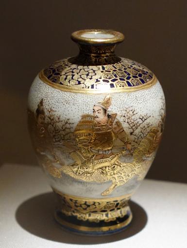 Keywords: Ovoid Vase, Japan (Kyoto), attributed to Kinkozan workshop, 1870s-1920s, earthenware with overglaze and gold on dark cobalt - Chazen Museum of Art - DSC02378.JPG en Exhibit in the Chazen Museum of Art University of Wisconsin-Madison Madison Wisconsin USA This artwork is old enough so that it is in the public domain Photography was permitted in the museum without restriction 2013-07-21 14 01 32 own Daderot cc-zero Ceramics of Japan in the Chazen Museum of Art Uploaded with UploadWizard Kinkozan ware |