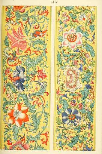 Keywords: Owen Jones - Examples of Chinese Ornament - 1867 - plate 054.png 053 LIV 54 055 Compositions in similar style to those of the last plate but from painted china basins PD-old-100-1923 Porcelain of China Floral designs in China Floral patterns