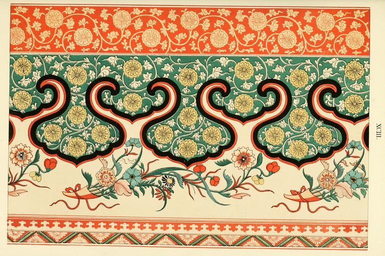 | Keywords: Owen Jones - Examples of Chinese Ornament - 1867 - plate 093.png 90 092 XCIII 93 094 From a painted china Bottle There is much of the Indian character in this example particularly in the detached flowers at the base of the subject PD-old-100-1923 Porcelain of China Ceramic bottles Floral designs in China Floral patterns |
