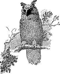 Keywords: owl bird perched branch nocturnal horned wildlife predator