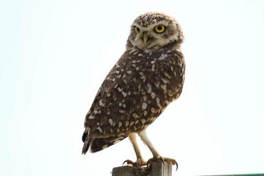 Keywords: owl bird predator bird of prey perched post outdoors nature looking nocturnal eyes wildlife