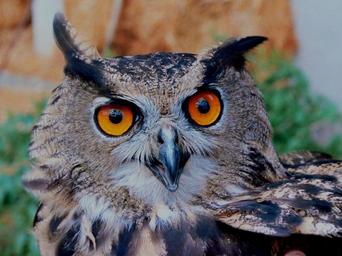 Keywords: owl horned bird bird of prey predator nocturnal stare eyes avian perched
