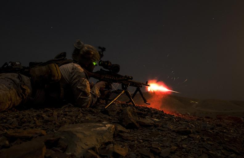 Keywords: Owning the Night (12479272214).jpg A Marine from the 13th Marine Expeditionary Unit provides cover fire during a platoon assault exercise at Arta Range Djibouti Feb 10 2014 The 13th MEU is deployed with the Boxer Amphibious Ready Group as a theater reserve and crisis response force throughout the U S 5th Fleet area of responsibility U S Air Force photo by Staff Sgt Erik Cardenas/Released https //www flickr com/photos/marine_corps/12479272214/ Owning the Night 2014-02-10 16 45 https //www flickr com/people/40927340 N03 Marines from Arlington VA United States PD-USGov United States Marine Corps Official Page https //flickr com/photos/40927340 N03/12479272214 2016-09-03 22 11 10 United States Government Work United States Air Force Djibouti Night Amphibious forces Lighting