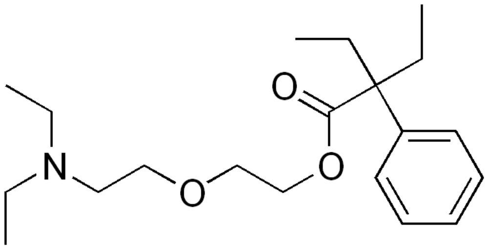 Keywords: Oxeladin.png chemical structure of Oxeladin own 2007-07-18 Edgar181 Carboxylate esters Tertiary amines Ethers Phenyl compounds
