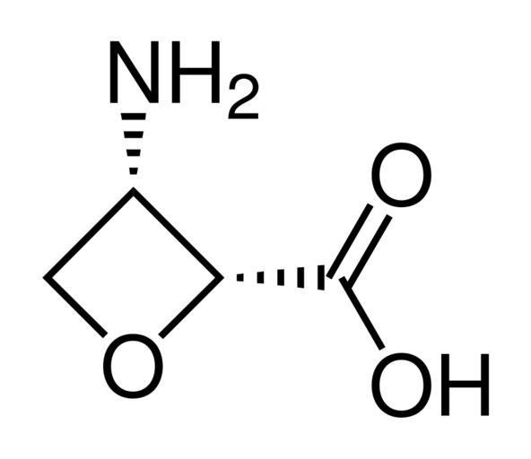 Keywords: Oxetin.svg Chemical structure of oxetin an antibiotic isolated from Streptomyces sp own 2007-09-22 Calvero Oxetanes Beta-amino acids Antibiotics