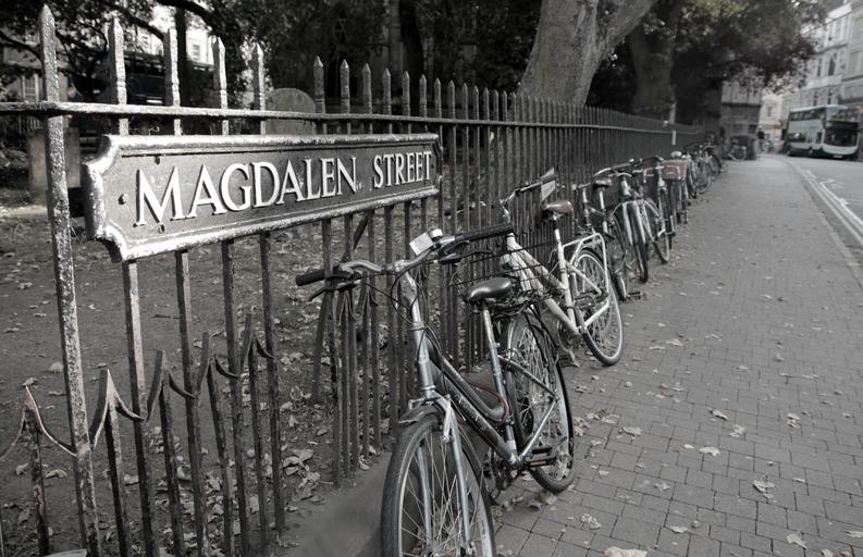 Keywords: oxford england bicycles black and white british iron fence city street english uk britain historic old tourism sidewalk sign europe