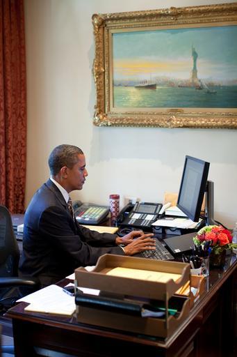 | Keywords: P100810PS-0062.jpg  en President Barack Obama does last-minute edits on his remarks at the desk of Personal Secretary Katie Johnson in the Outer Oval Office Oct 8 2010 Official White House Photo by Pete Souza http //www flickr com/photos/whitehouse/5098342319/ Pete Souza White House Photographer 2010-10-08 PD-USGov Flickr-no known copyright restrictions The White House http //flickr com/photos/35591378 N03/5098342319 04 15 14 November 2010 UTC United States Government Work Barack Obama in 2010 20101008 White House in 2010 People using computers in the 2010s Photographs by Pete Souza White House presidential secretary office Barack Obama preparing for speeches Personality rights |