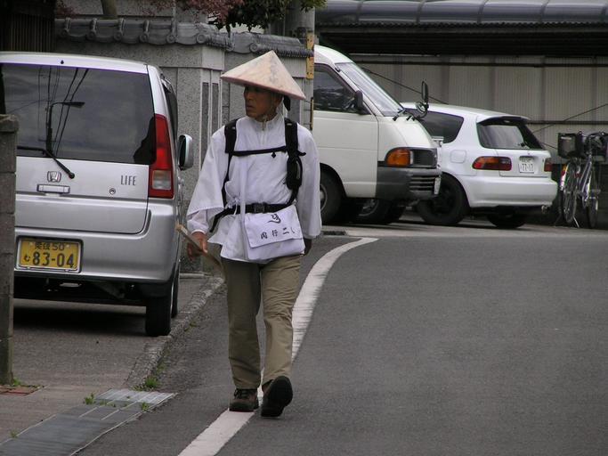 Keywords: 土居商店街をゆくお遍路さんP4044924.JPG 居商店街をゆくお遍路さん AUTUMNSNAKE 2007・4 4 AUTUMNSNAKE PD なし Men of Japan Shikokuchuo Ehime People with hats Kasa hat Shikoku Pilgrimage