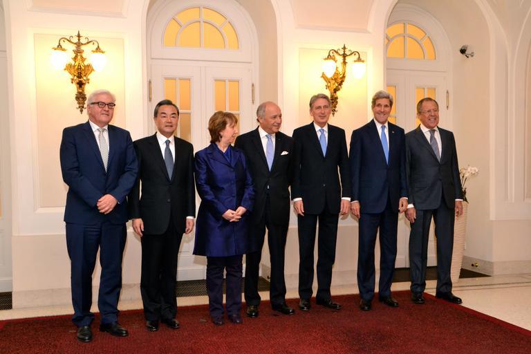 | Keywords: people indoor Foreign Ministers from the P5+1 nations - Frank-Walter Steinmeier of Germany, Wang Yi of China, Baroness Catherine Ashton of the European Union, Laurent Fabius of France, Philip Hammond of the United Kingdom, John Kerry of the United States, and Sergey Lavrov of Russia - stand before photographers for a "family photo" amid multilateral negotiations with Iran about the future of its nuclear program. Foreign Ministers from the P5+1 nations - Frank-Walter Steinmeier of Germany, Wang Yi of China, Baroness Catherine Ashton of the European Union, Laurent Fabius of France, Philip Hammond of the United Kingdom, John Kerry of the United States, and Sergey Lavrov of Russia - stand before photographers for a "family photo" amid multilateral negotiations with Iran about the future of its nuclear program. |