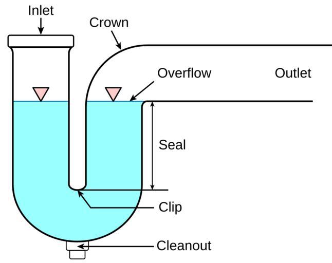 Keywords: P-trap.svg P-trap to seal out sewer gases 100px<br/>http //www cdc gov/nceh/publications/books/housing/figure_cha09 htm Fred the Oyster<br/> v 2014-10-13 PD-USGov Trap plumbing Images created by Fred the Oyster SVG diagrams GFDL cc-by-sa-all redundant