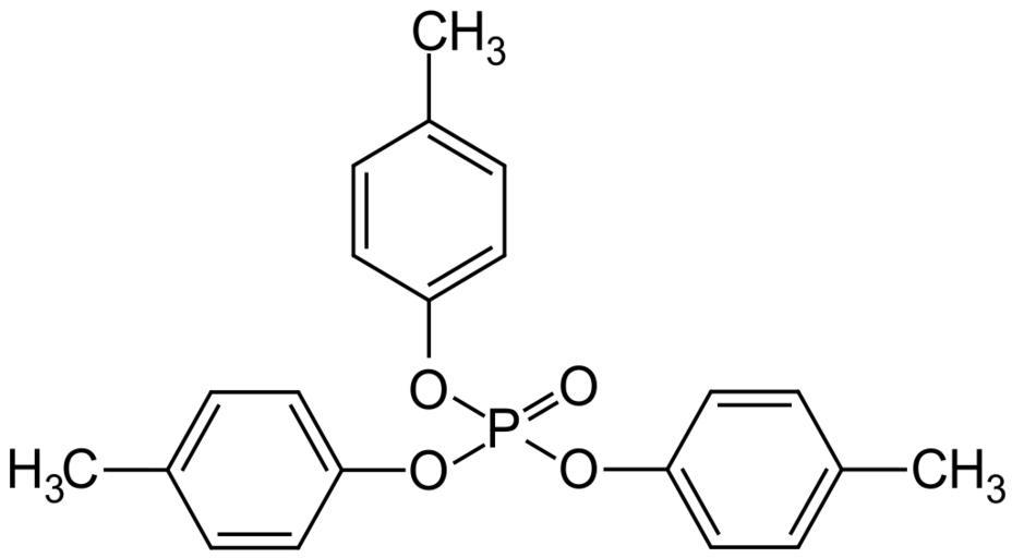 Keywords: P-Tricresylphosphate.svg structure of p p p-Tricresylphosphate Struktur von p p p-Trikresylphosphat Own 2008-06-24 Ilgom talk Organophosphates