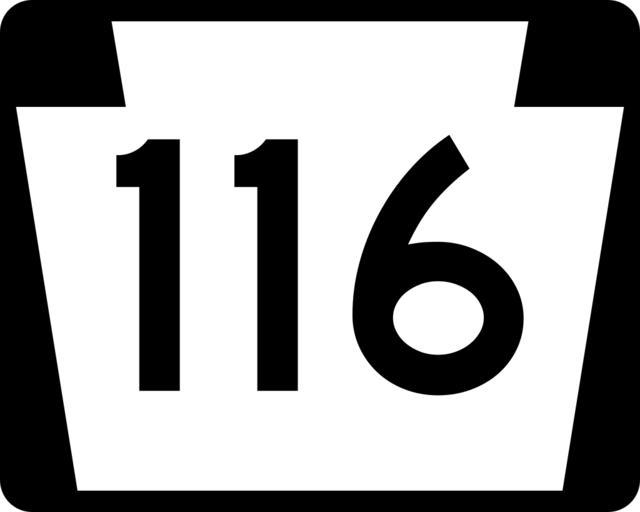 | Keywords: PA-116.svg 750 mm by 600 mm 30 in by 24 in Pennsylvania shield made to the specifications of the Manual on Uniform Traffic Control Devices MUTCD 2003 Edition sign M1-5 Uses the Roadgeek 2005 fonts United States law does not permit the copyrighting of typeface designs and the fonts are meant to be copies of a U S Government-produced work anyway Own 2006-09-12 TwinsMetsFan Public Domain Pennsylvania Route shields 116 | ||||