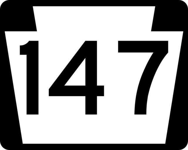Keywords: PA-147.svg 750 mm by 600 mm 30 in by 24 in Pennsylvania shield made to the specifications of the Manual on Uniform Traffic Control Devices MUTCD 2003 Edition sign M1-5 Uses the Roadgeek 2005 fonts United States law does not permit the copyrighting of typeface designs and the fonts are meant to be copies of a U S Government-produced work anyway own 2006-07-25 TwinsMetsFan Public Domain Pennsylvania Route shields 147 |