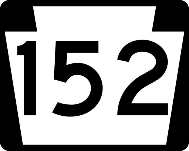 | Keywords: PA-152.svg 750 mm by 600 mm 30 in by 24 in Pennsylvania shield made to the specifications of the Manual on Uniform Traffic Control Devices MUTCD 2003 Edition sign M1-5 Uses the Roadgeek 2005 fonts United States law does not permit the copyrighting of typeface designs and the fonts are meant to be copies of a U S Government-produced work anyway Own 2006-11-15 TwinsMetsFan Public Domain Pennsylvania Route shields 152 Pennsylvania Route 152 152 number | ||||