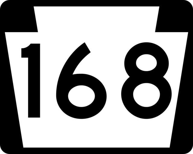 | Keywords: PA-168.svg 750 mm by 600 mm 30 in by 24 in Pennsylvania shield made to the specifications of the Manual on Uniform Traffic Control Devices MUTCD 2003 Edition sign M1-5 Uses the Roadgeek 2005 fonts United States law does not permit the copyrighting of typeface designs and the fonts are meant to be copies of a U S Government-produced work anyway “ updated to D series font own 2006-07-29 Homefryes Public Domain Pennsylvania Route shields 168 Pennsylvania Route 168 | ||||