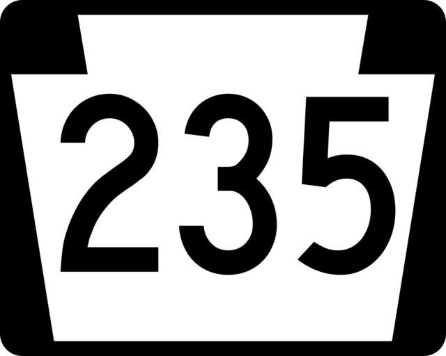 | Keywords: PA-235.svg 750 mm by 600 mm 30 in by 24 in Pennsylvania shield made to the specifications of the Manual on Uniform Traffic Control Devices MUTCD 2003 Edition sign M1-5 Uses the Roadgeek 2005 fonts United States law does not permit the copyrighting of typeface designs and the fonts are meant to be copies of a U S Government-produced work anyway Own 2006-11-29 TwinsMetsFan Public Domain Pennsylvania Route shields 235 | ||||