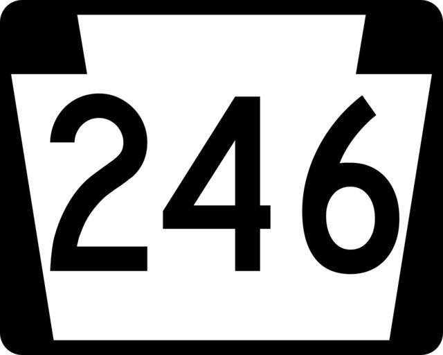 | Keywords: PA-246.svg 750 mm by 600 mm 30 in by 24 in Pennsylvania shield made to the specifications of the Manual on Uniform Traffic Control Devices MUTCD 2003 Edition sign M1-5 Uses the Roadgeek 2005 fonts United States law does not permit the copyrighting of typeface designs and the fonts are meant to be copies of a U S Government-produced work anyway Own 2006-11-29 TwinsMetsFan Public Domain Pennsylvania Route shields 246 | ||||