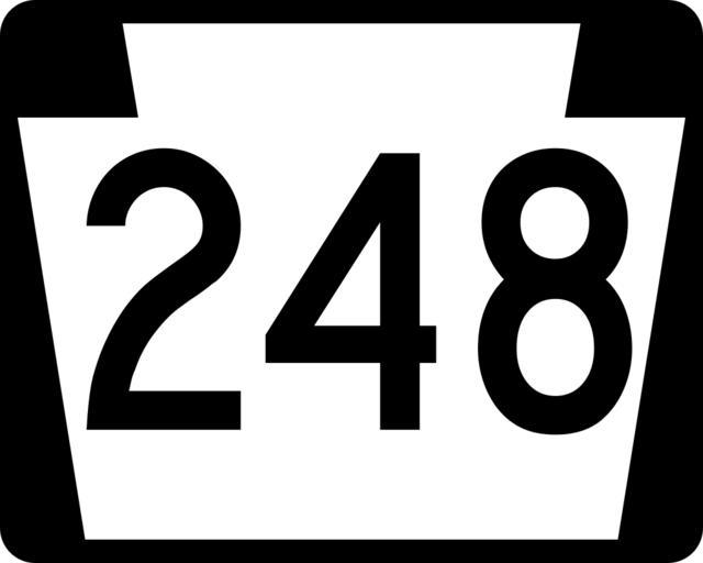 | Keywords: PA-248.svg 750 mm by 600 mm 30 in by 24 in Pennsylvania shield made to the specifications of the Manual on Uniform Traffic Control Devices MUTCD 2003 Edition sign M1-5 Uses the Roadgeek 2005 fonts United States law does not permit the copyrighting of typeface designs and the fonts are meant to be copies of a U S Government-produced work anyway Own 2006-10-16 TwinsMetsFan Public Domain Pennsylvania Route shields 248 | ||||