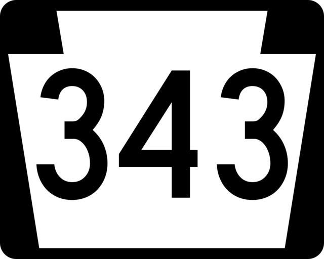 Keywords: PA-343.svg 750 mm by 600 mm 30 in by 24 in Pennsylvania shield made to the specifications of the Manual on Uniform Traffic Control Devices MUTCD 2003 Edition sign M1-5 Uses the Roadgeek 2005 fonts United States law does not permit the copyrighting of typeface designs and the fonts are meant to be copies of a U S Government-produced work anyway Own 2006-11-29 TwinsMetsFan Public Domain Pennsylvania Route shields 343 |