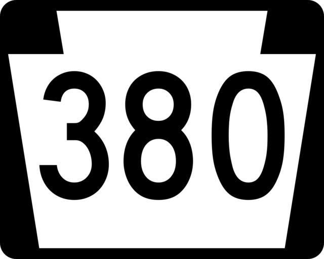 | Keywords: PA-380.svg 750 mm by 600 mm 30 in by 24 in Pennsylvania shield made to the specifications of the Manual on Uniform Traffic Control Devices MUTCD 2003 Edition sign M1-5 Uses the Roadgeek 2005 fonts United States law does not permit the copyrighting of typeface designs and the fonts are meant to be copies of a U S Government-produced work anyway own 2006-07-16 Homefryes Public Domain Pennsylvania Route shields 380 Pennsylvania Route 380 | ||||
