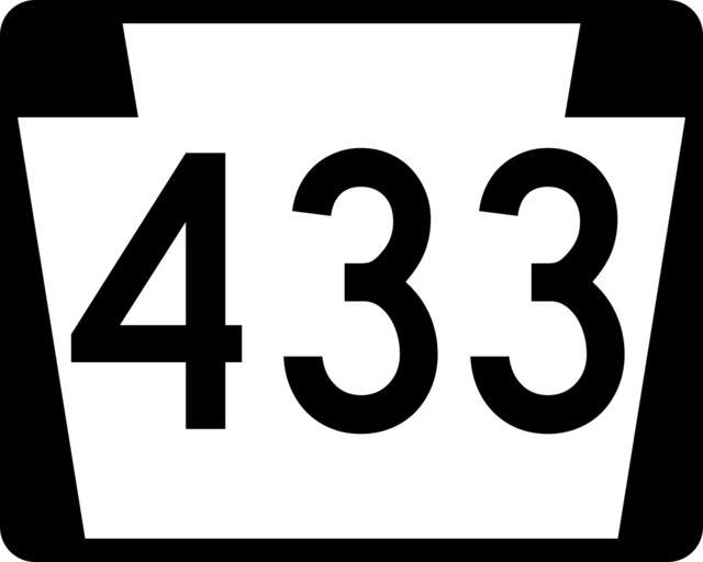 | Keywords: PA-433.svg 750 mm by 600 mm 30 in by 24 in Pennsylvania shield made to the specifications of the Manual on Uniform Traffic Control Devices MUTCD 2003 Edition sign M1-5 Uses the Roadgeek 2005 fonts United States law does not permit the copyrighting of typeface designs and the fonts are meant to be copies of a U S Government-produced work anyway Own 2006-11-26 TwinsMetsFan Public Domain Pennsylvania Route shields 433 | ||||