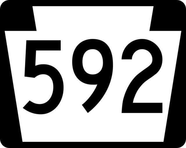 | Keywords: PA-592.svg 750 mm by 600 mm 30 in by 24 in Pennsylvania shield made to the specifications of the Manual on Uniform Traffic Control Devices MUTCD 2003 Edition sign M1-5 Uses the Roadgeek 2005 fonts United States law does not permit the copyrighting of typeface designs and the fonts are meant to be copies of a U S Government-produced work anyway Own 2006-11-28 TwinsMetsFan Public Domain Pennsylvania Route shields 592 | ||||