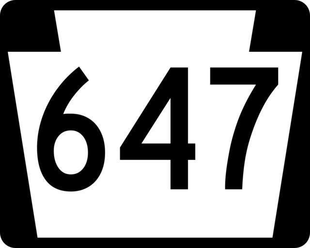 | Keywords: PA-647.svg 750 mm by 600 mm 30 in by 24 in Pennsylvania shield made to the specifications of the Manual on Uniform Traffic Control Devices MUTCD 2003 Edition sign M1-5 Uses the Roadgeek 2005 fonts United States law does not permit the copyrighting of typeface designs and the fonts are meant to be copies of a U S Government-produced work anyway Own 2006-11-28 TwinsMetsFan Public Domain Pennsylvania Route shields 647 | ||||