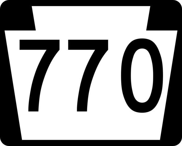 | Keywords: PA-770.svg 750 mm by 600 mm 30 in by 24 in Pennsylvania shield made to the specifications of the Manual on Uniform Traffic Control Devices MUTCD 2003 Edition sign M1-5 Uses the Roadgeek 2005 fonts United States law does not permit the copyrighting of typeface designs and the fonts are meant to be copies of a U S Government-produced work anyway Own 2006-11-12 TwinsMetsFan Public Domain Pennsylvania Route shields 770 Pennsylvania Route 770 | ||||