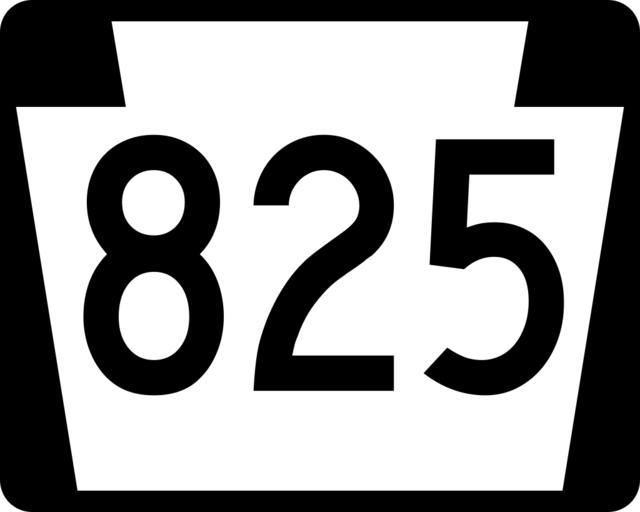 | Keywords: PA-825.svg 750 mm by 600 mm 30 in by 24 in Pennsylvania shield made to the specifications of the Manual on Uniform Traffic Control Devices MUTCD 2003 Edition sign M1-5 Uses the Roadgeek 2005 fonts United States law does not permit the copyrighting of typeface designs and the fonts are meant to be copies of a U S Government-produced work anyway Own 2006-11-28 TwinsMetsFan Public Domain Pennsylvania Route shields 825 | ||||
