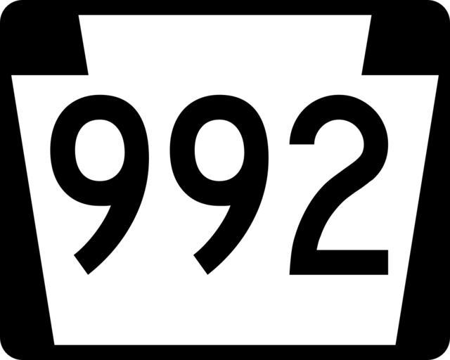 | Keywords: PA-992.svg 750 mm by 600 mm 30 in by 24 in Pennsylvania shield made to the specifications of the Manual on Uniform Traffic Control Devices MUTCD 2003 Edition sign M1-5 Uses the Roadgeek 2005 fonts United States law does not permit the copyrighting of typeface designs and the fonts are meant to be copies of a U S Government-produced work anyway Own 2006-11-27 TwinsMetsFan Public Domain Pennsylvania Route shields 992 | ||||