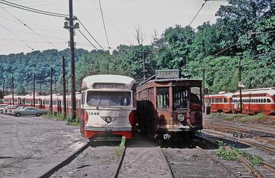 | Keywords: outdoor railroad vehicle train road A Roger Puta Photograph A Roger Puta Photograph <b>A Roger Puta Photograph</b> PAAC PCC 1446 a -43 NEEDL AVE car (abandoned line) in storage next to a McQuire - Cummins car used in MoW work. 1200 series PCCs stored behind 1446 at South Hills Jct., Pittsburgh on June 26, 1965 (26765179695).jpg en <b>A Roger Puta Photograph</b> 2016-05-01 22 15 25 https //www flickr com/people/129679309 N05 railfan 44 https //www flickr com/photos/129679309 N05/26765179695/ User Fæ/Flickr API Puta's Rail Mass Transit Photographs Trains and Trolleys Trams/Streetcars I Love Trains PCC tram/streetcar/trolley Pittsburgh Transit Your Best Railroad Photos Your Favorite Railroad Shot Streetcars and Light Rail in North America Trains and Railroads of Pennsylvania Pittsburgh Rails North American Rail Transit Mel Finzer RogerPuta Photographs by Roger Puta Photos uploaded from Flickr by Fæ using a script Streetcars in Pittsburgh in the 1960s |